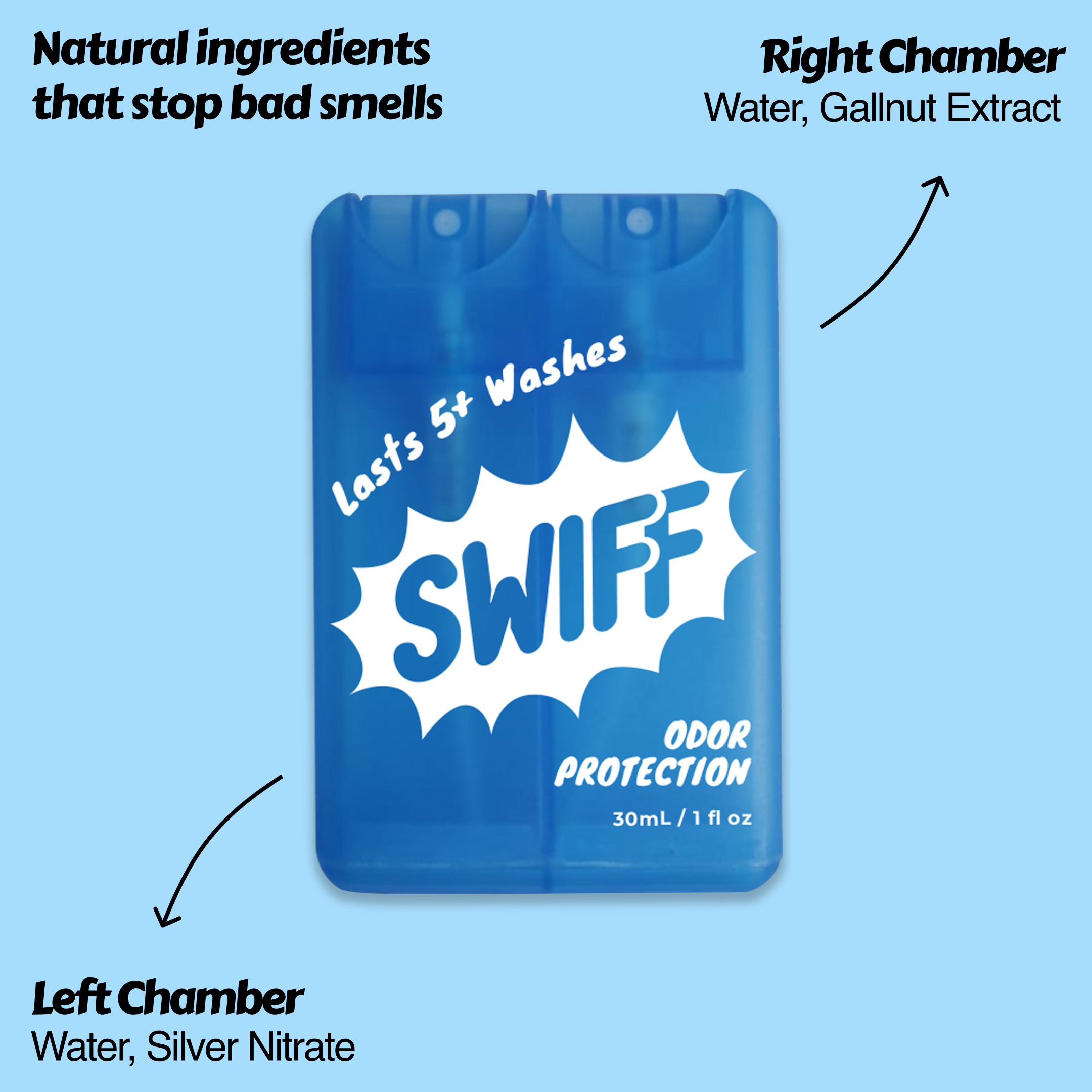 Unlike deodorants that only mask odors with harsh chemicals and synthetic fragrances, SWIFF targets the source – fast and effectively. No more temporary fixes that wear off in hours to reveal unpleasant odors again.