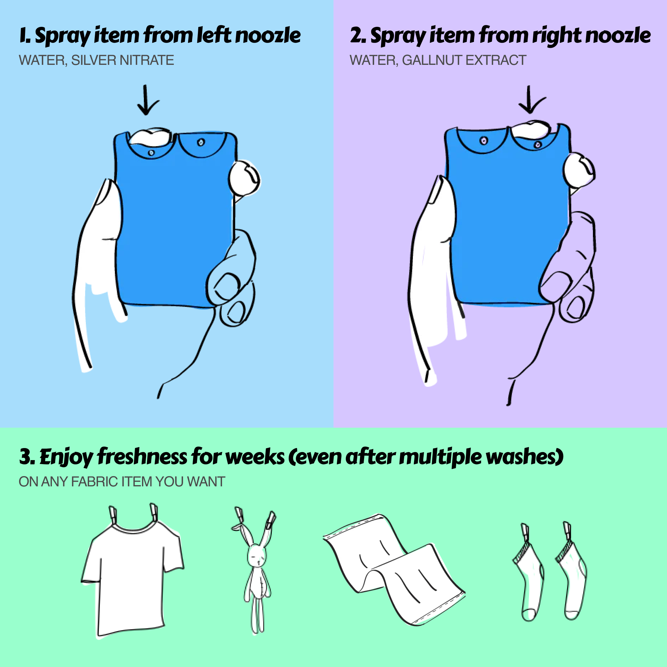 Each application can last many washes! But we recommend re-applying after 5 washes or if your items start to smell again.