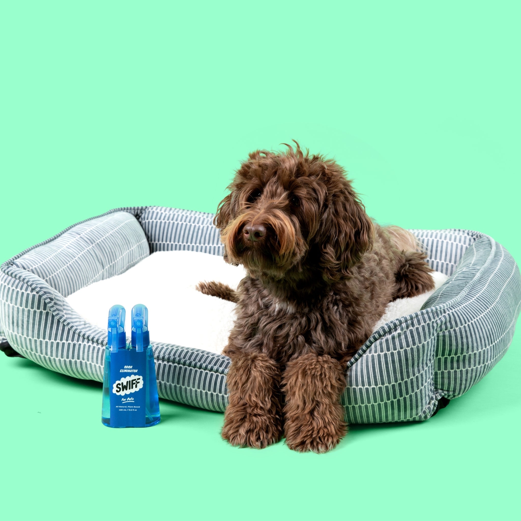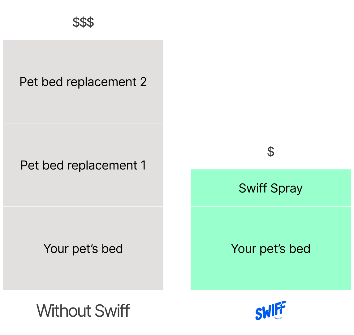 SWIFF Pets has a larger surface spray and volume, which means you can cover large areas in minimal time and effort. Think large areas like: pet beds, sofas, rugs, beds, etc.